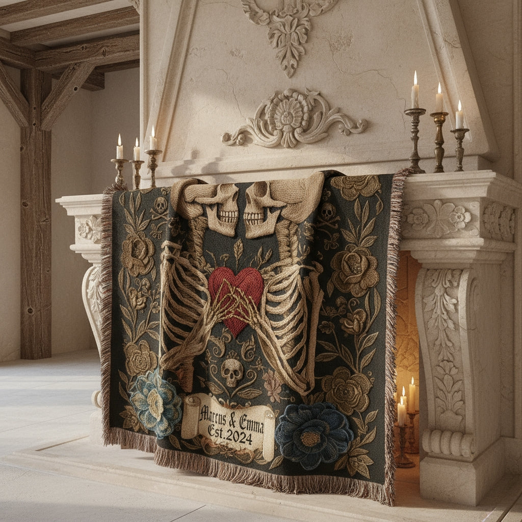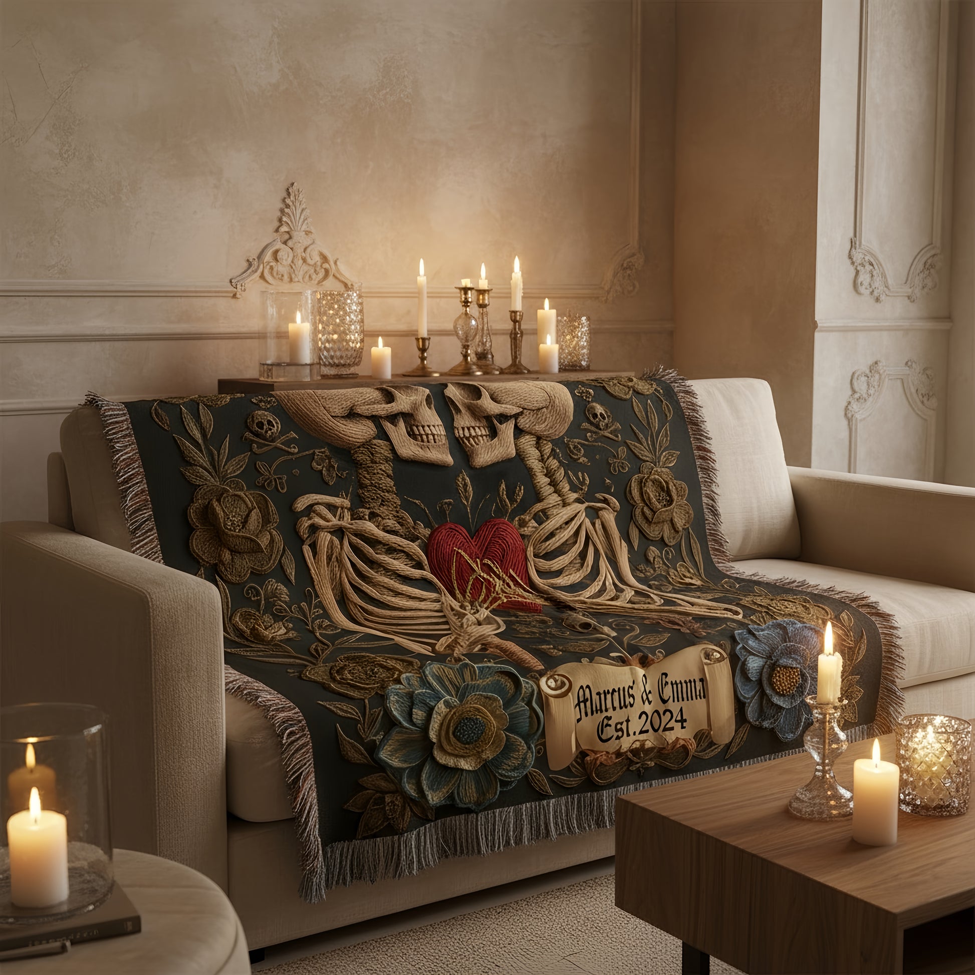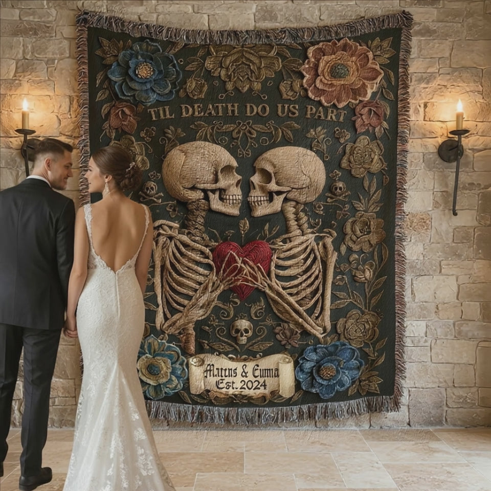 Skeleton Couple Till Death Blanket, Personalized Skeleton Lovers Wedding Blanket, Spooky Goth Couple Halloween Gift, Valentines, Anniversary